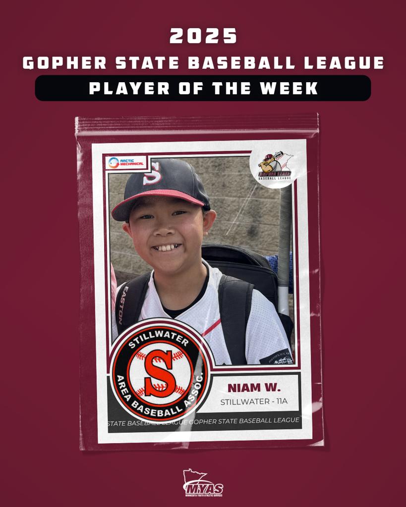 Niam is always supporting his teammates with a positive attitude and encouragement on and off the field. He always gives a 100% and models by example. He has fun and enjoys the game while bouncing back quickly from adversity and the challenges baseball brings. In addition to baseball, he golfs, plays basketball, and flag football. In the classroom, he excels academically in the Stillwater GATE program. A stellar student-athlete!